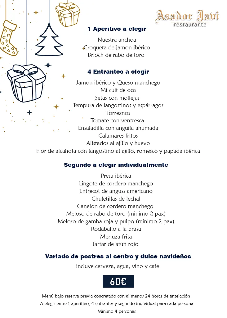 En Restaurante Asador Javi hemos diseñado un menú de Navidad y para grupos con los mejores ingredientes y un toque de creatividad.